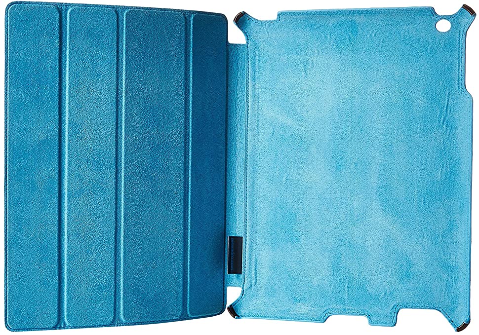 Raffinata custodia a in pelle spatolata con taglio a vivo dipinto del tipico turchese Bluesquare. Disponibile in nero.