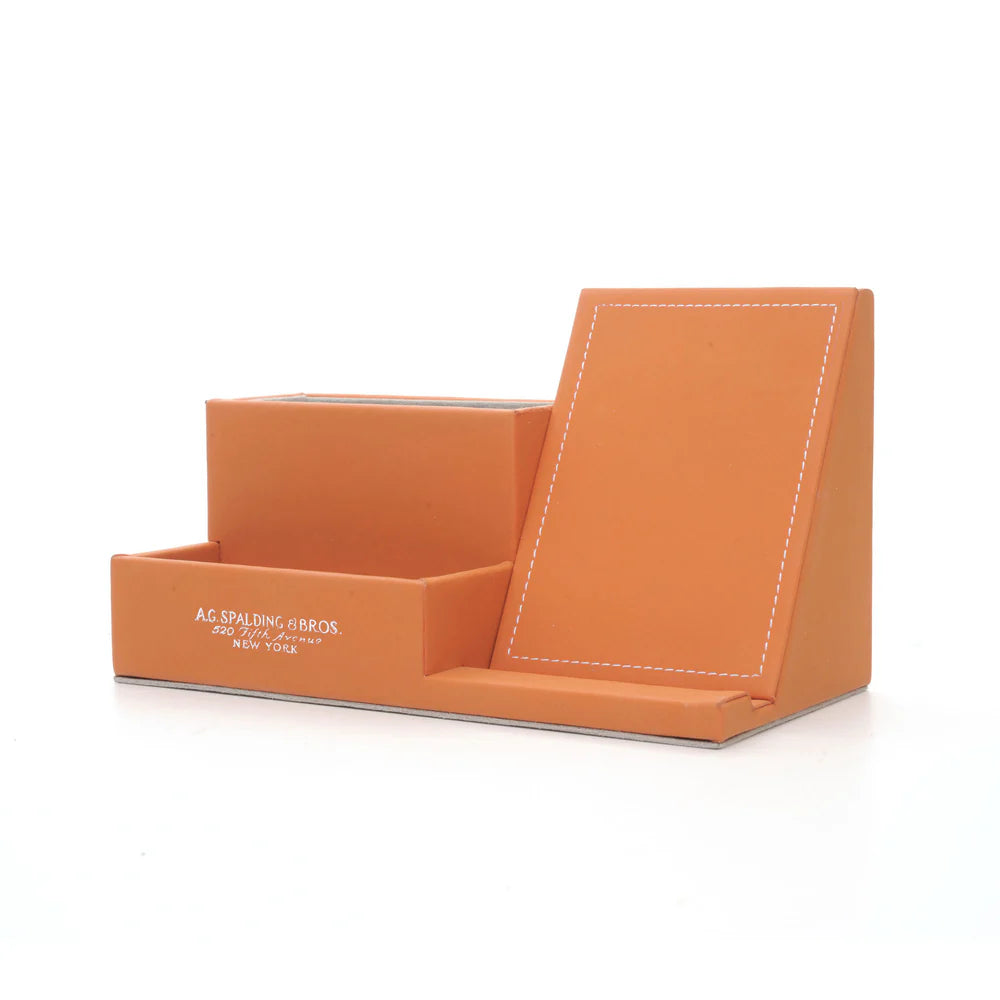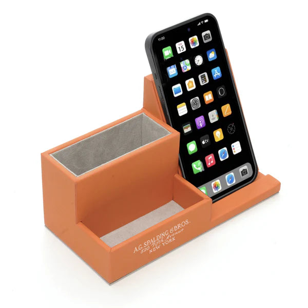 Raffinato portapenne/telefono dal design retrò, in ecopelle arancione della caratteristica linea vintage.
