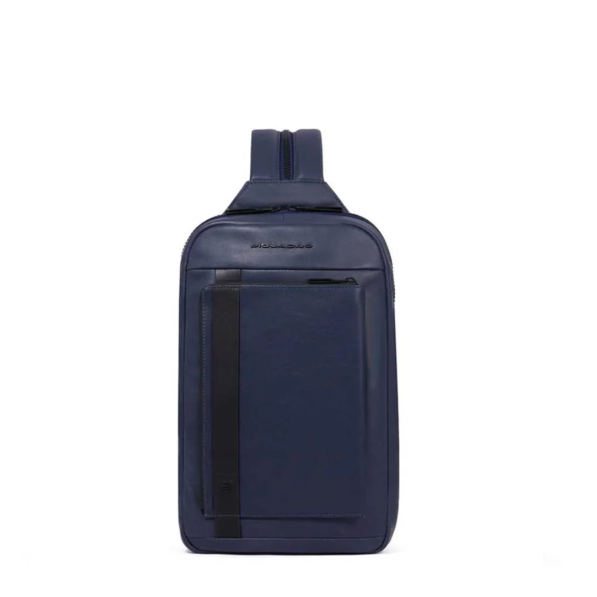 Pratico e compatto monospalla da uomo in pelle di vitello . Disponibile blu.
