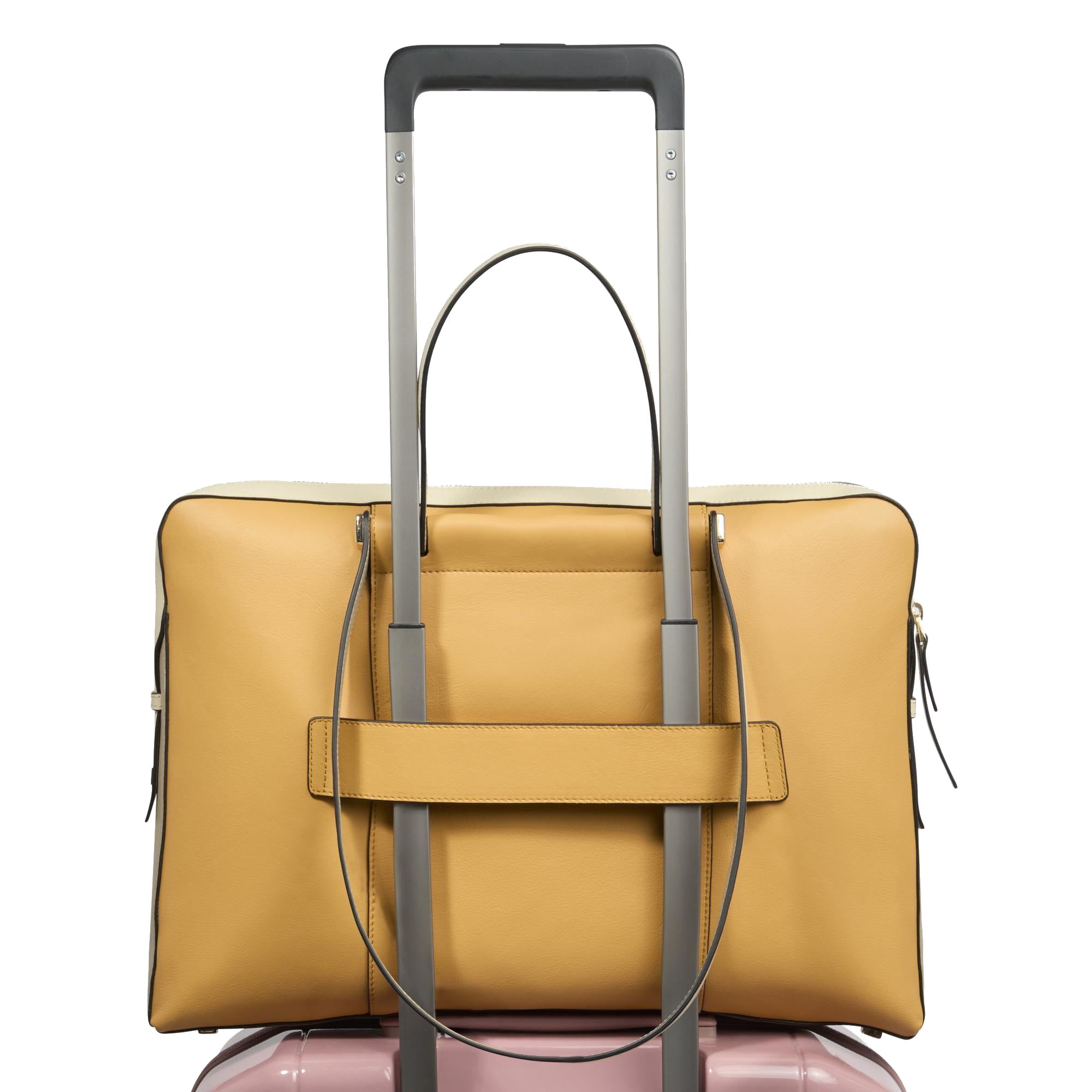 Completa la dotazione la fascia posteriore per l’aggancio al trolley, che la rende perfetta anche per i viaggi di lavoro.