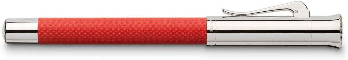 Corpo realizzato in pregiata resina Corallo con incisa con decorazione geometrica, incisa col metodo Guilloche. Elegante cappuccio con clip fermaglio a molla design in rodio di alta qualità. Sottile e maneggevole, ha un'impugnatura allungata rodiata che la rende estremamente elegante. Il logo della casa madre, è riportato sulla testina del cappuccio e sul fondello.