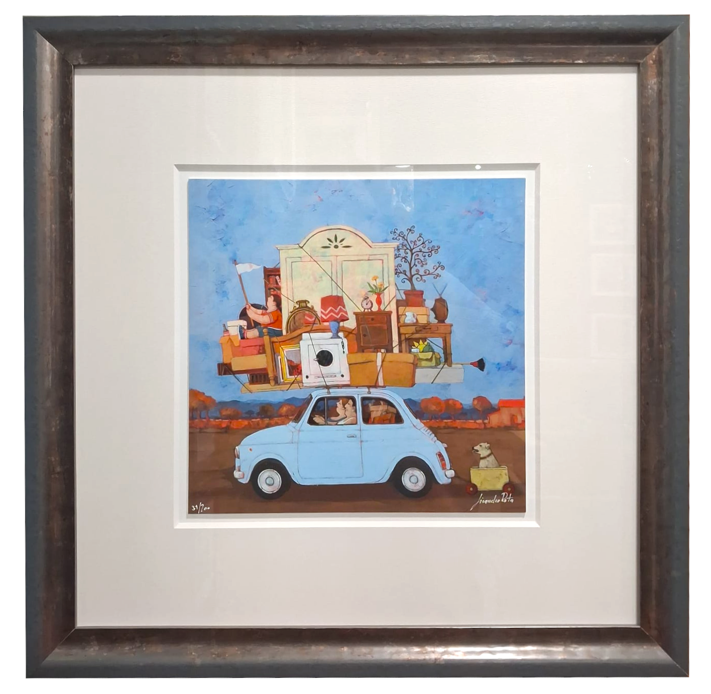 Grafica incorniciata di Lisandro Rota "In 500 per un trasloco"