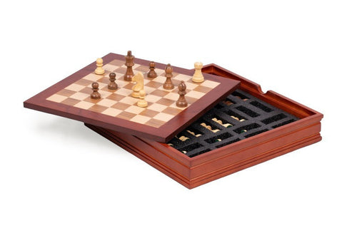 Scacchiera con contenitore con scacchi in legno di acacia "Noce/Acero"
