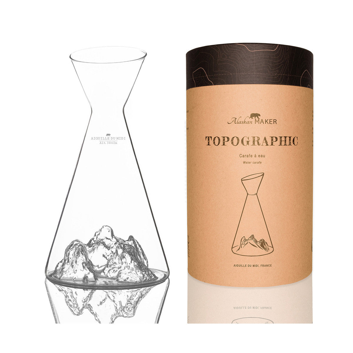 La particolarità di questa caraffa è la splendida decorazione che arricchisce la base: un meraviglioso rilievo tridimensionale che riproduce una delle vette più famose del mondo: IL AUGUILLE DU MIDI!