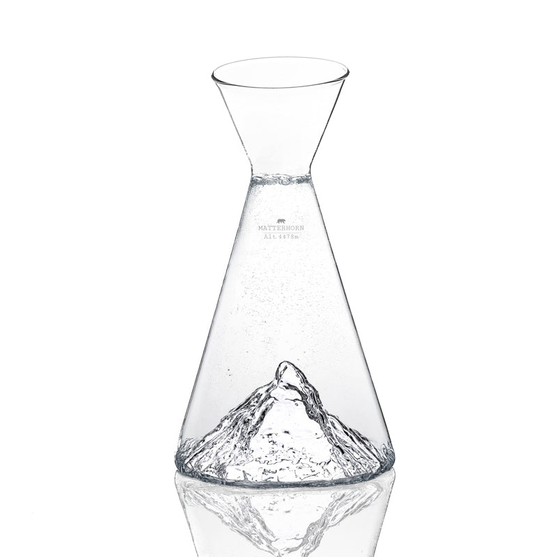 La particolarità di questa caraffa è la splendida decorazione che arricchisce la base: un meraviglioso rilievo tridimensionale che riproduce una delle vette più famose del mondo: IL MONTE MATTERHORN!