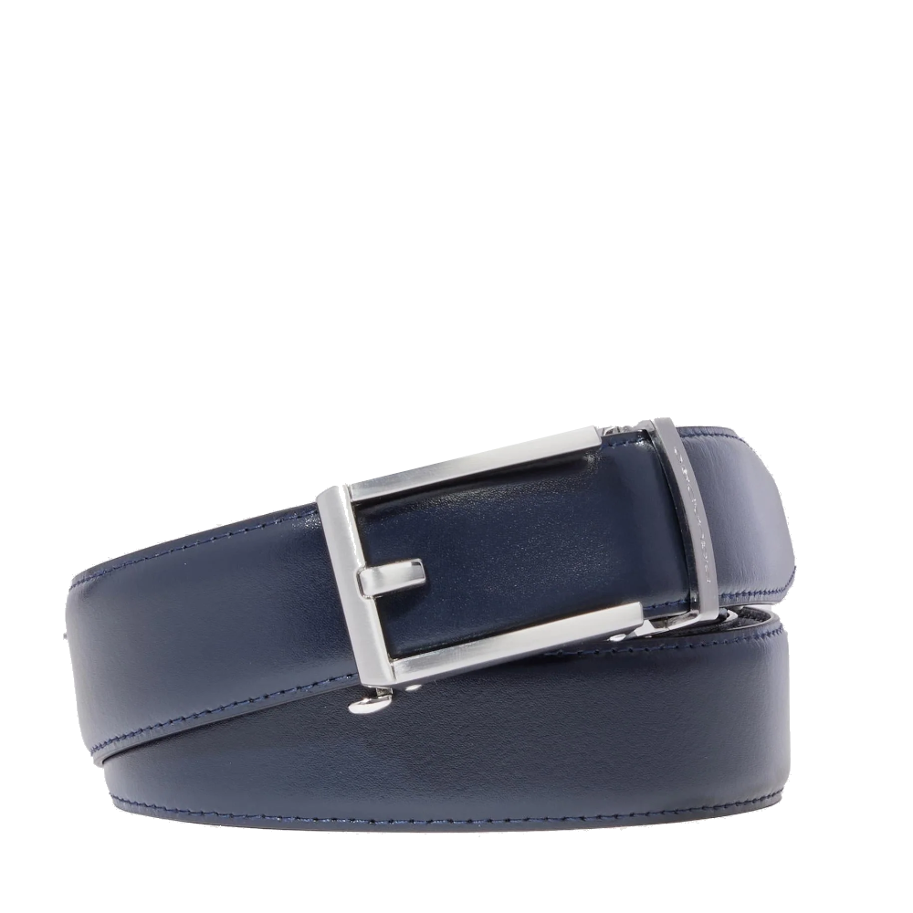 Cintura da uomo in pelle regolabile senza fori Piquadro, elegante e funzionale, pensata per chi desidera uno stile impeccabile unito al massimo comfort. Realizzata in pregiata pelle di vitello, si distingue per la sua superficie liscia e raffinata, valorizzata da una fibbia automatica dal design moderno con finiture metalliche di alta qualità.