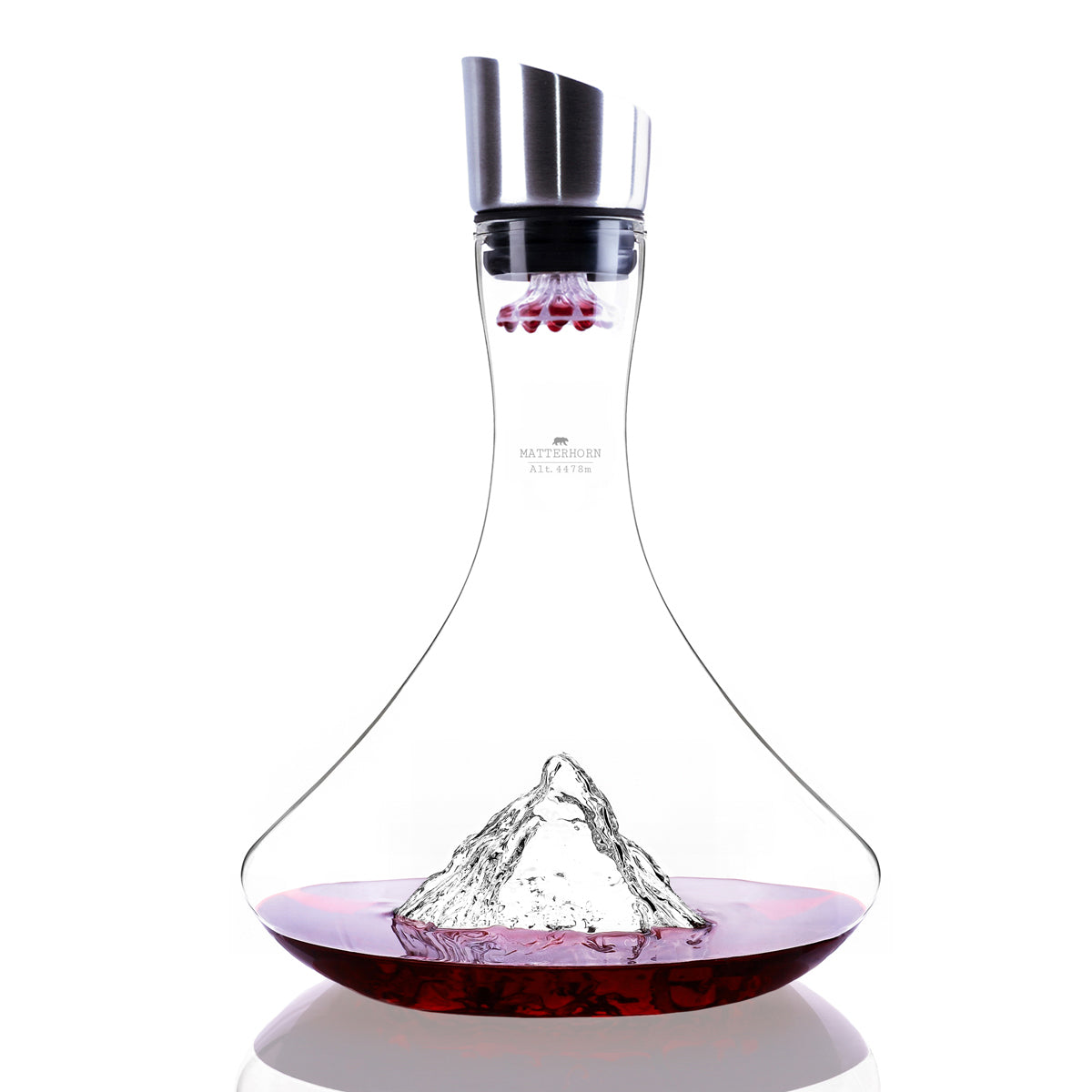 La particolarità di questo decanter è la splendida decorazione che arricchisce la base: un meraviglioso rilievo tridimensionale che riproduce una delle vette più famose del mondo: IL Matterhorn!
