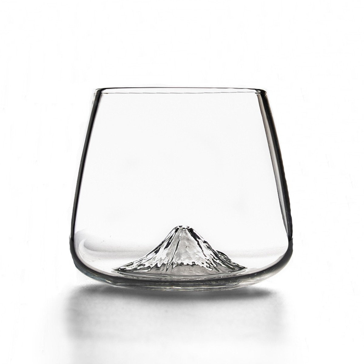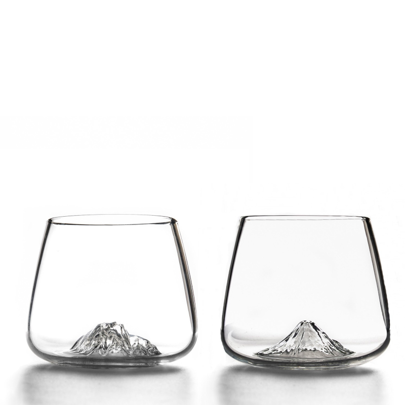 La particolarità di questo bicchiere è la splendida decorazione che arricchisce la base: un meraviglioso rilievo tridimensionale che riproduce una delle vette più famose del mondo: il Denali e il monte Fuji!