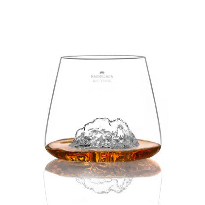 La particolarità di questo bicchiere è la splendida decorazione che arricchisce la base: un meraviglioso rilievo tridimensionale che riproduce una delle vette più famose del mondo: Le Tofane e la Marmolada!