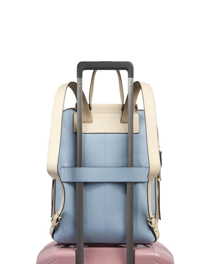 Disponibile in azzurro con dettagli beige