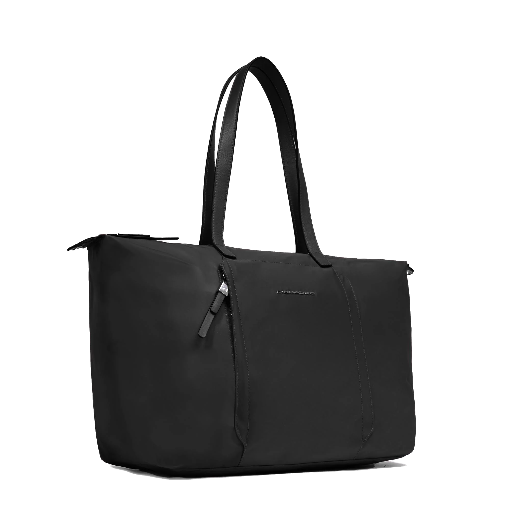 La borsa è dotata di manici fissi per un portamento elegante e di una tracolla sganciabile, ideale per indossarla anche a spalla o crossbody quando sei in movimento. Un dettaglio smart la distingue: la tasca dedicata al Piquadro Smart Tracker, che ti consente di monitorare la posizione della borsa e viaggiare sempre con la massima tranquillità.