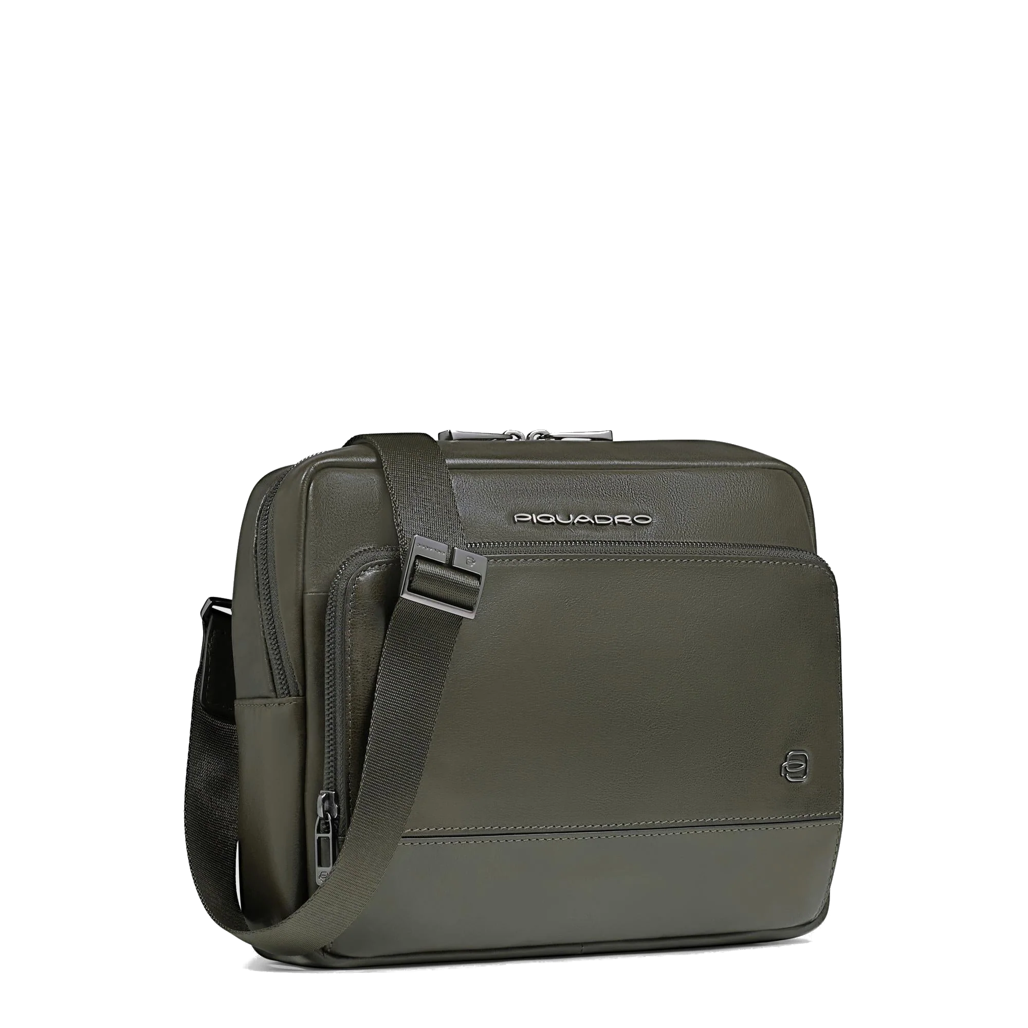 Tracolla in tessuto, regolabile. Sulla parte frontale e posteriore sono presenti comode tasche. L'interno è strutturato con tasca porta  IPAD MINI®/ MINI®2/ MINI®3.e porta oggetti. Completa di protezione anti frode RFID e tasca interna per Piquadro Smart Tracker.