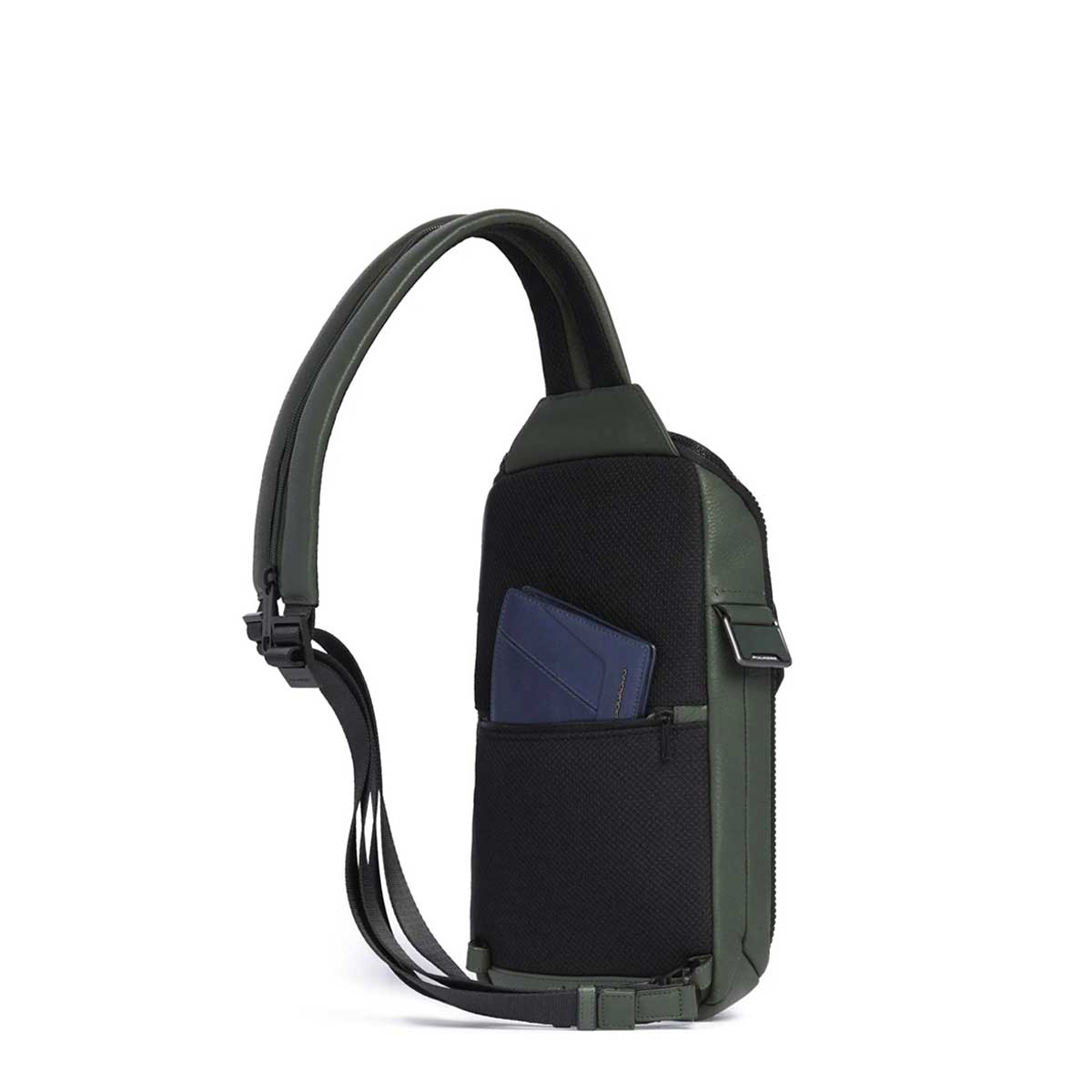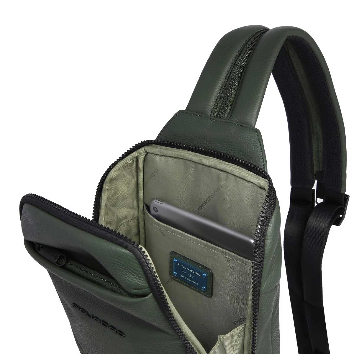 Elegante e funzionale, il monospalla Ronnie di Piquadro è un accessorio maschile raffinato, realizzato interamente in pelle di alta qualità.