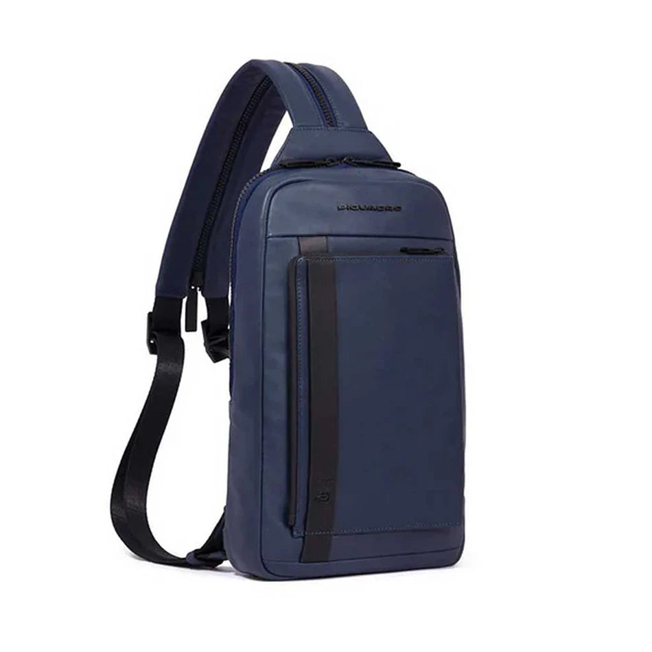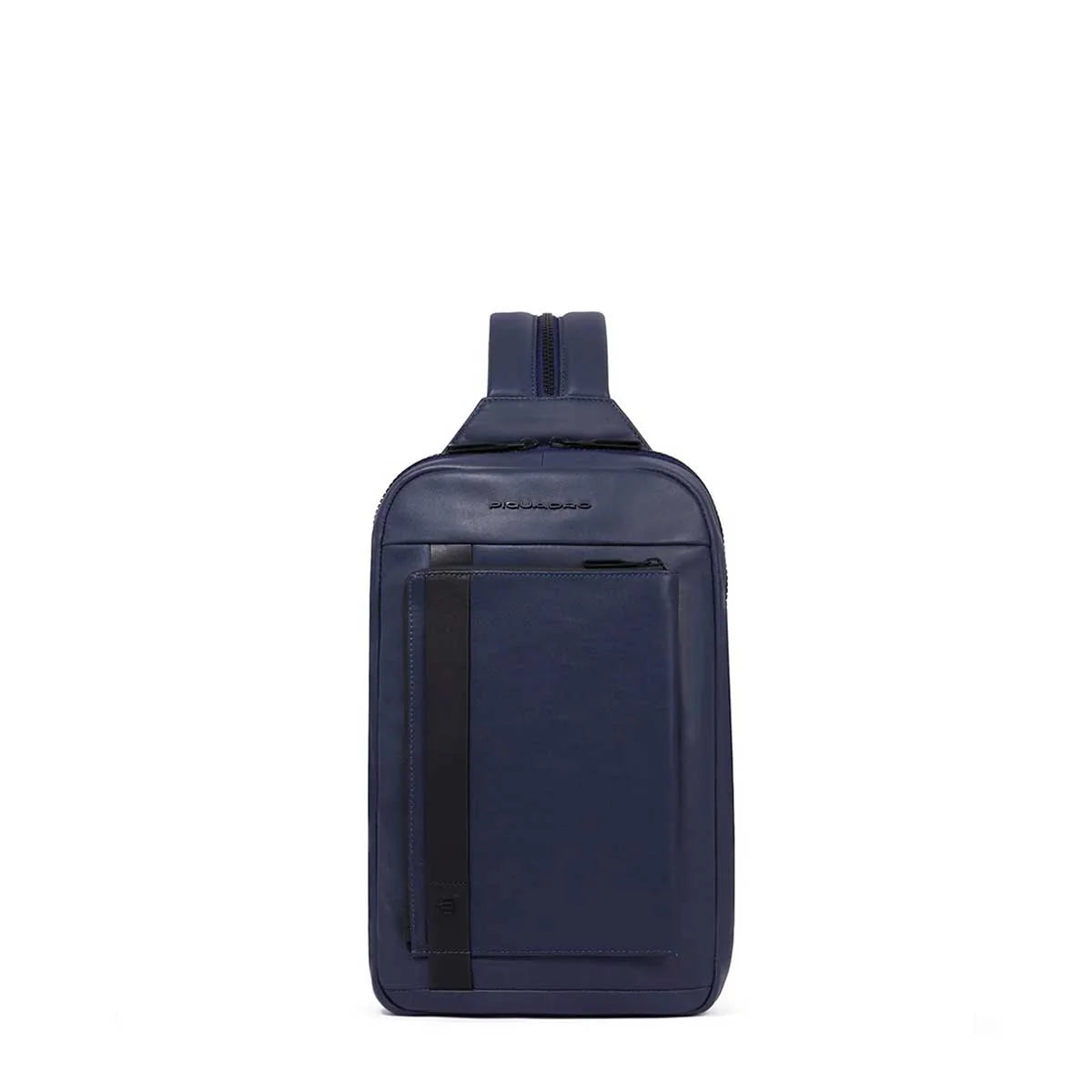 Pratico e compatto monospalla da uomo in pelle di vitello . Disponibile blu.