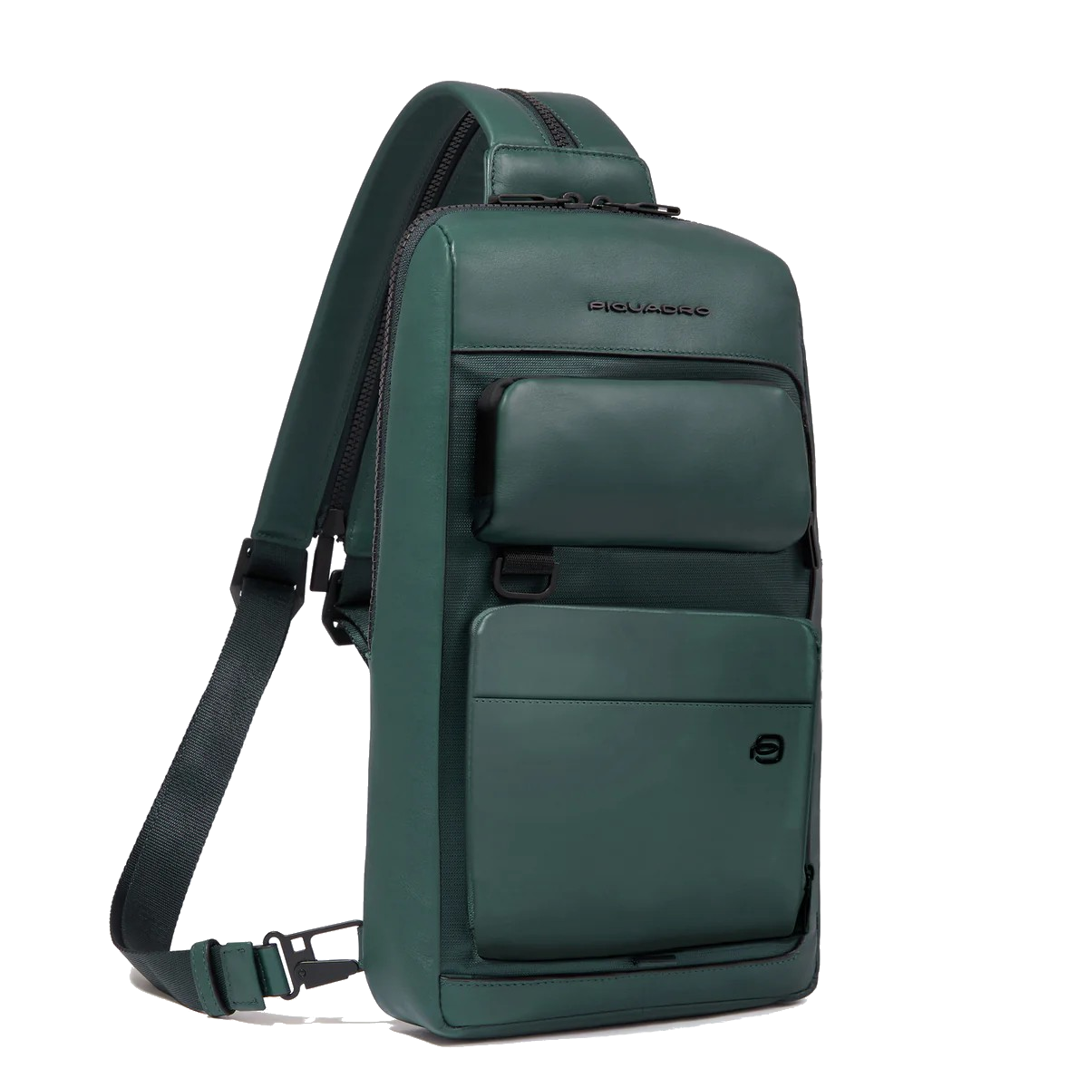Pratico e compatto monospalla da uomo in pelle di vitello . Disponibile verde.