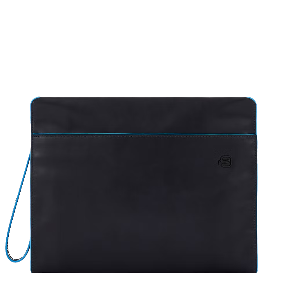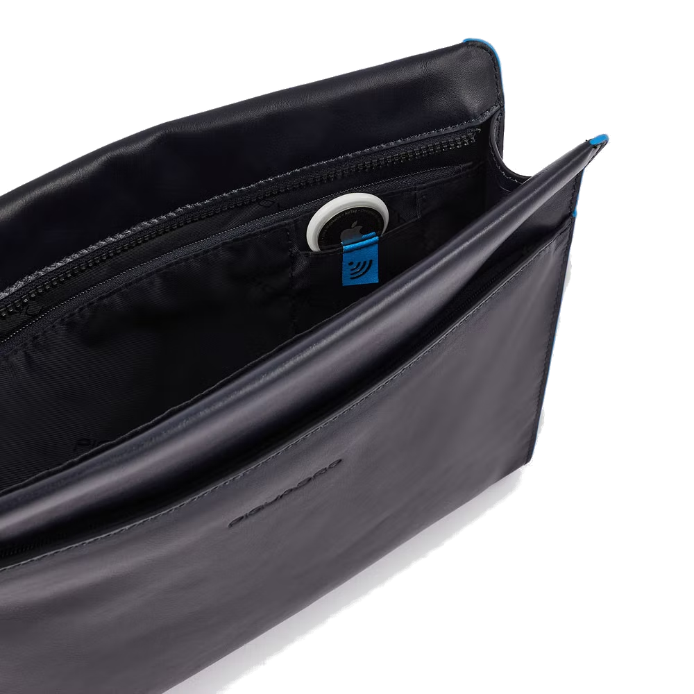 Originale pochette monocomparto in morbidissima pelle di vitello pieno fiore con conciatura minerale e taglio vivo dipinto a mano in turchese. Ideale per trasportare iPad® AIR-IPad PRO 9.7/IPAD 11", completo di tasca per AIRTAG/CONNEQU. tasca esterna portasmarphone e protezione anti frode RFID. Chiusura zippata con tiralampo in pelle. Logo in metallo, applicato frontalmente.
