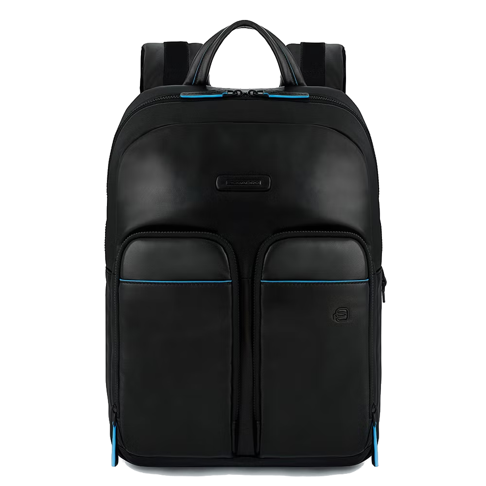 Dotato di spallacci regolabili, imbottiti, con maniglia superiore. Munito di due tasche frontali dotate di zip, gancio trolley. Metalleria antracite. Interno organizzato con vano portatablet 11" e portapc da 13".