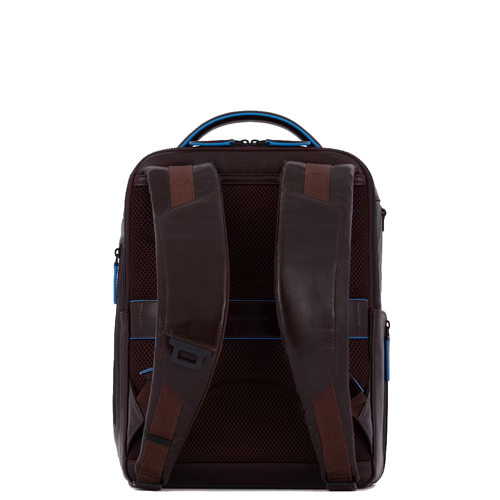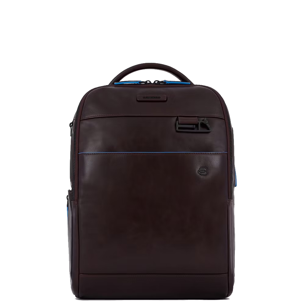 Originale zaino in pelle di vitello concia minerale con bordo taglio vivo dipinto in turchese . Disponibile in nero e mogano.