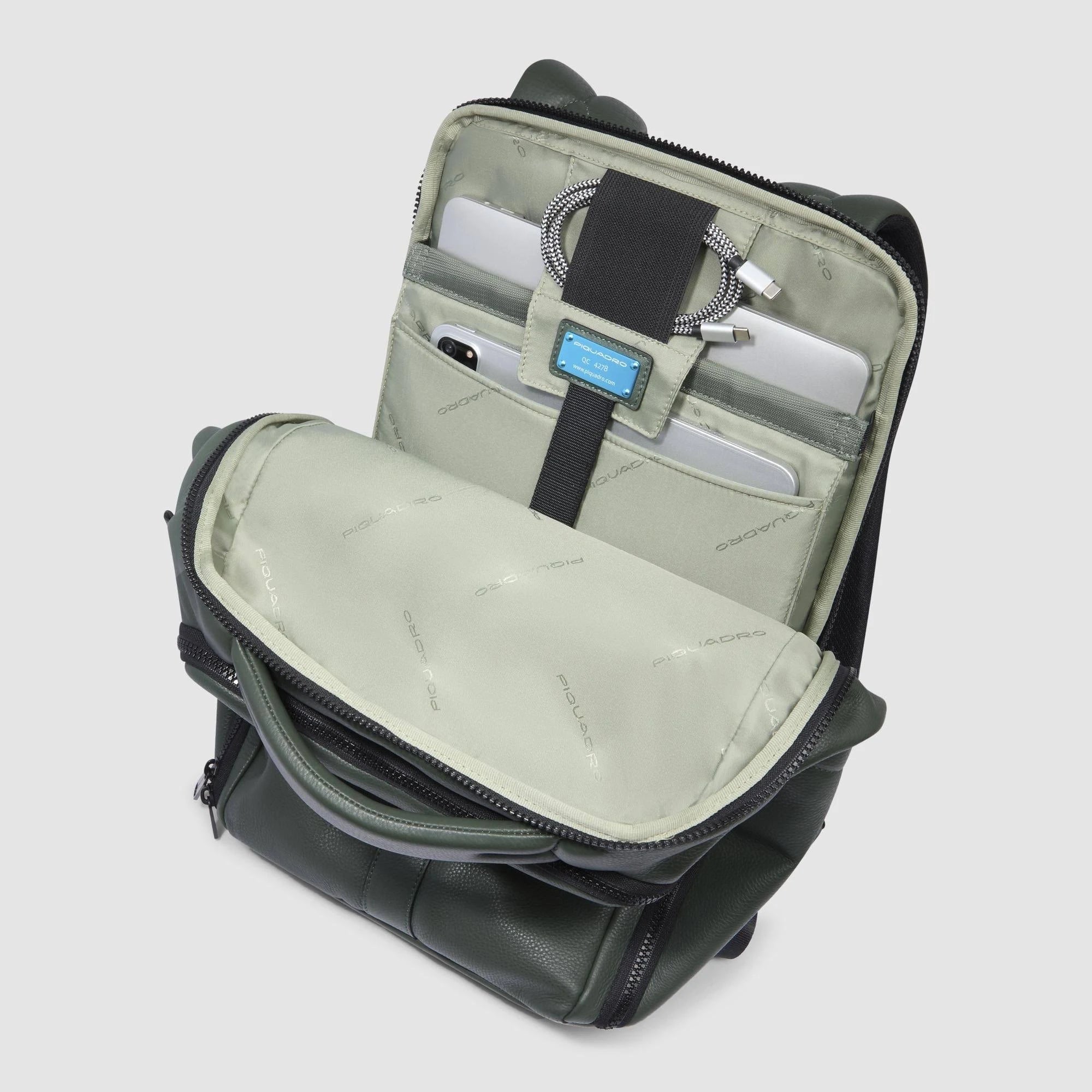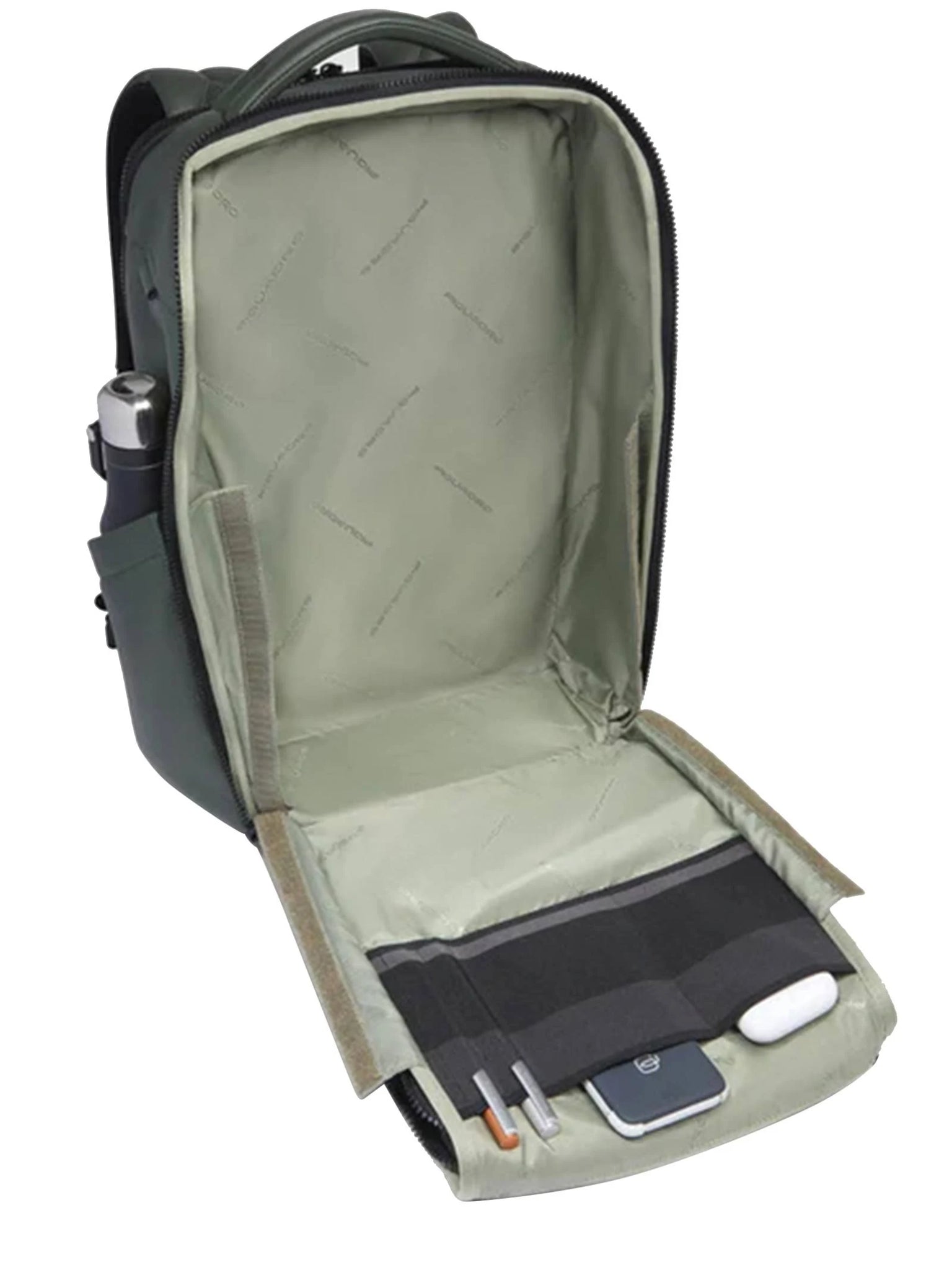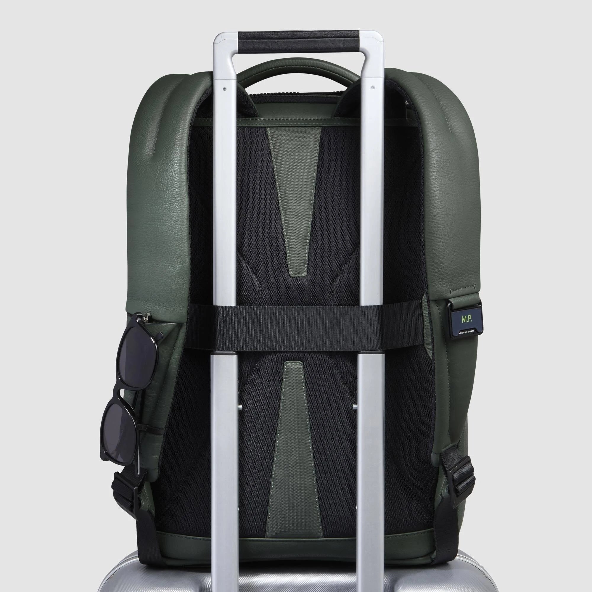 Struttura semirigida. Tasca frontale con chiusura con gancio, tasche laterali portabottiglia/ombrello, sistema d´aggancio del trolley. Può contenere un pc da 14" nello scomparto imbottito interno, shock absorber. Dotato di tasca porta iPad® 10,2'', iPad® Air 10,9'' e iPad®Pro 11''.organizzazione interna con tasche multifunzione e portapenne.