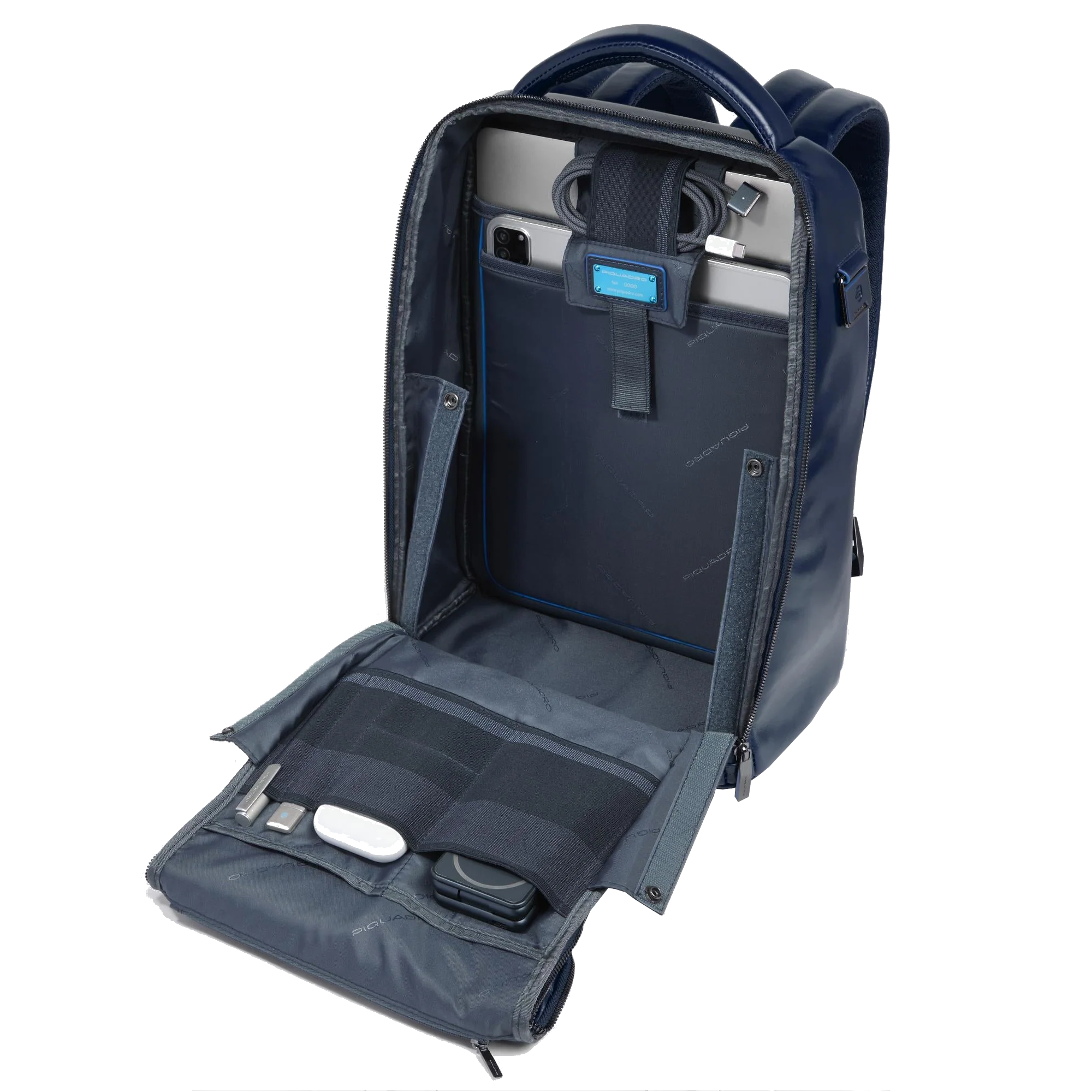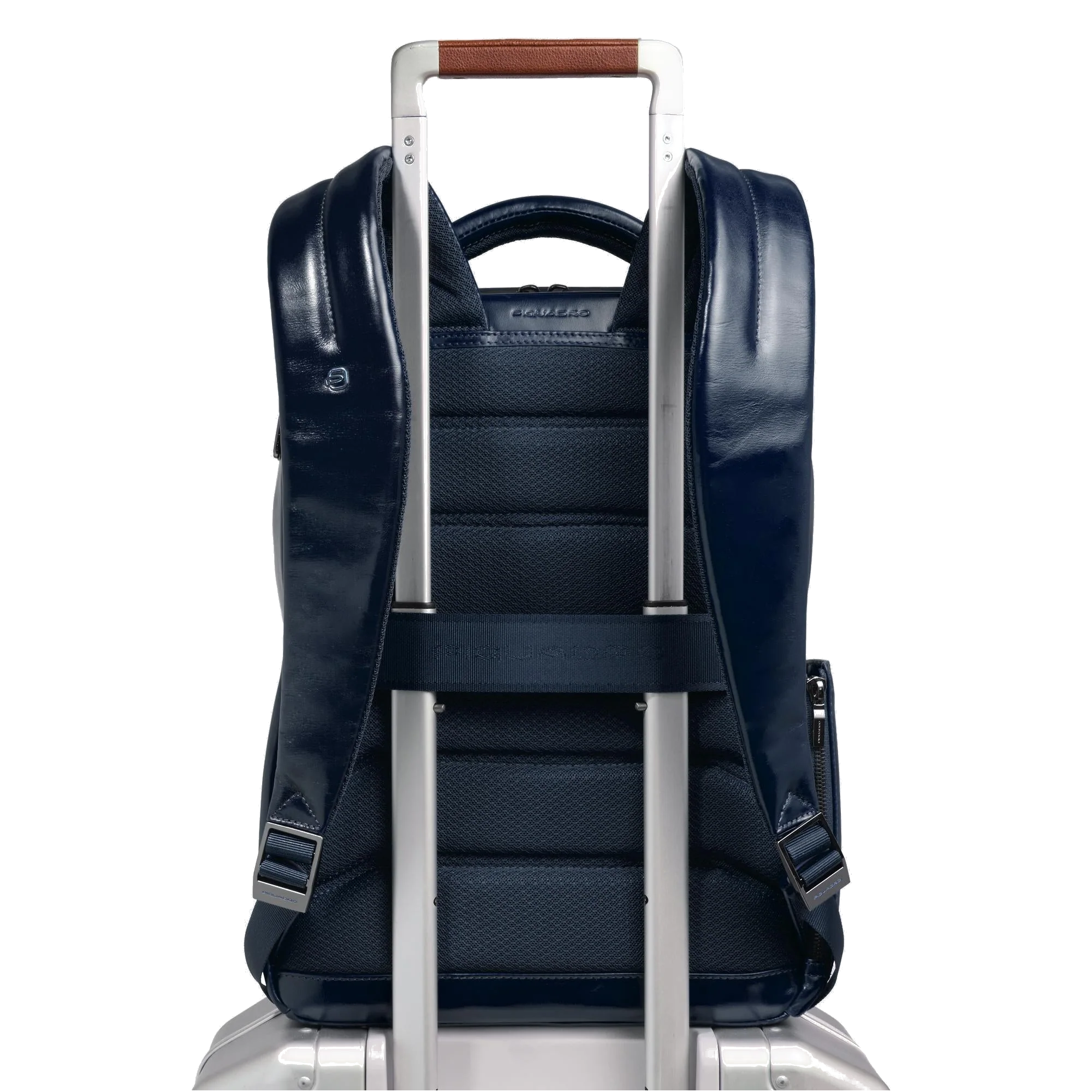 Dotato di un ampio comparto principale, lo zaino può ospitare un notebook fino a 14” e un iPad® 10.2", Air 10.9" o Pro 11" nel vano fisso imbottito con protezione antiurto Shock Absorber. Le tecnologie RFID integrate proteggono carte e documenti da intrusioni indesiderate, mentre la presenza di tasche dedicate per AirPods® e ombrello testimonia una cura sartoriale per i dettagli e la praticità.