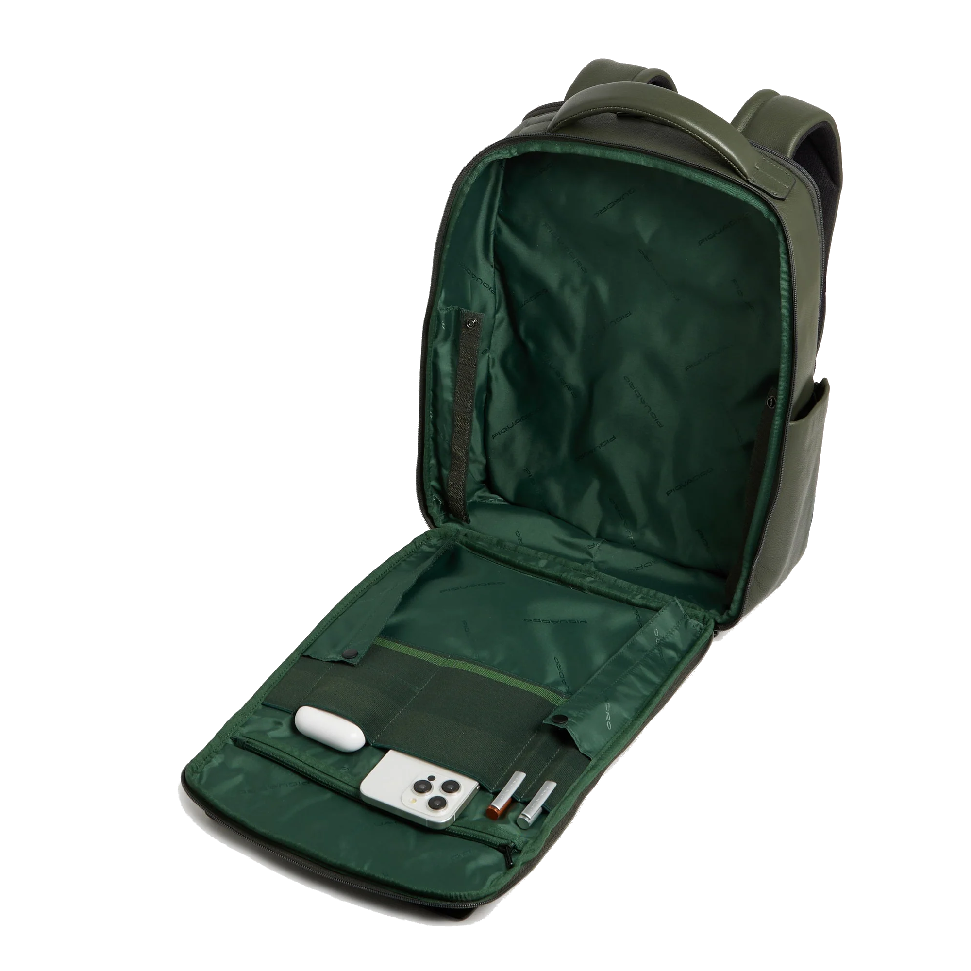 L’interno è studiato nei dettagli con tasca antigraffio in microfibra perfetta per AirPods®, smartphone e oggetti delicati, oltre al pratico porta occhiali con tasca dedicata. La presenza della protezione RFID salvaguarda carte e documenti da scansioni indesiderate, mentre la tasca power bank permette di ricaricare i dispositivi in movimento.