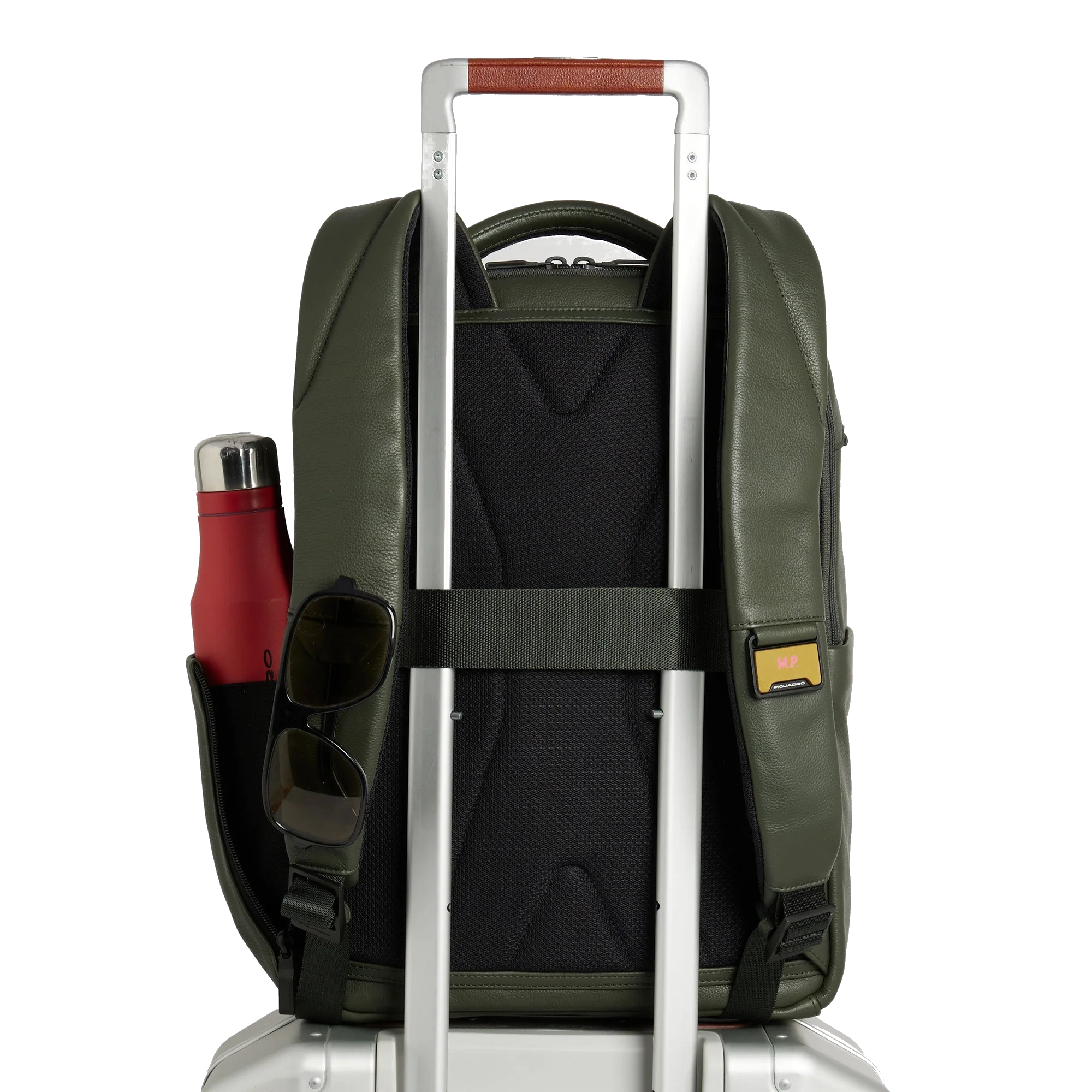 Elegante e funzionale, questo zaino da viaggio in pelle è progettato per chi cerca stile e organizzazione negli spostamenti quotidiani e di lavoro. La struttura con 2 comparti capienti consente di trasportare in sicurezza notebook fino a 14” e iPad®, grazie al sistema Shock Absorber antiurto che protegge i dispositivi da urti e cadute.
