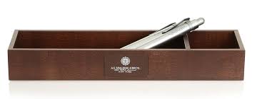 Coordinabile con altri complementi della stessa linea. La linea essenziale ed elegante lo rende un complemento perfetto all'interno di un ufficio o uno studio ma facilmente inseribile anche in un contesto abitativo. Il calore del legno scuro ne fa un pregevole pezzo d'arredamento di una estrema eleganza e finezza. Base con marchio inciso.