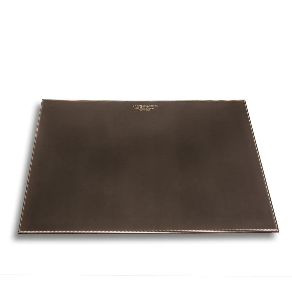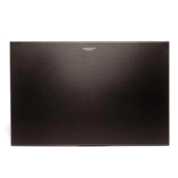 Raffinato sottomano realizzato in pelle di vitello, disponibile in marrone. Logo serigrafato in argento sulla parte superiore e impuntura a contrasto lungo tutto il perimetro.
