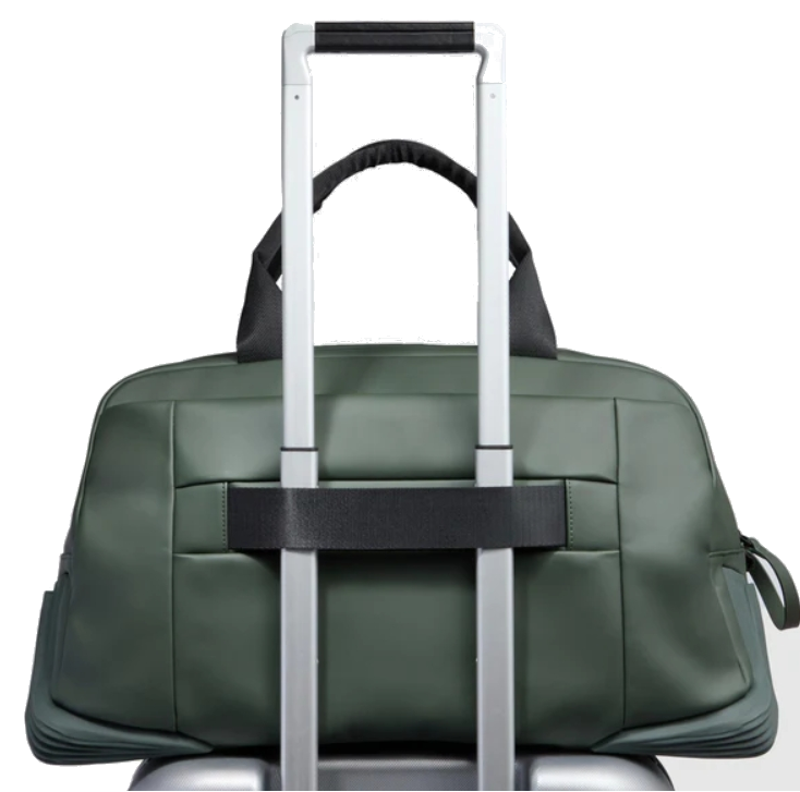 Borsone in tessuto gommato impermeabile e antiurto, progettato per resistere alle intemperie e agli urti quotidiani. Dotato di doppia chiusura a cerniera superiore per una maggiore sicurezza e praticità. Include una tracolla removibile e un sistema di aggancio posteriore per trolley, che lo rende compatto e facilmente trasportabile.