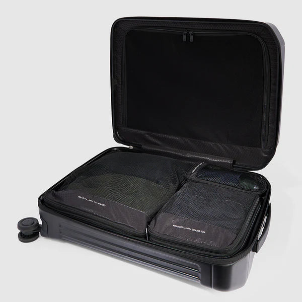 Dotato di scomparti interni intelligenti, tasche con chiusura a zip e inserti elastici, permette di organizzare con precisione abbigliamento, accessori e piccoli oggetti personali, ottimizzando lo spazio in valigia.